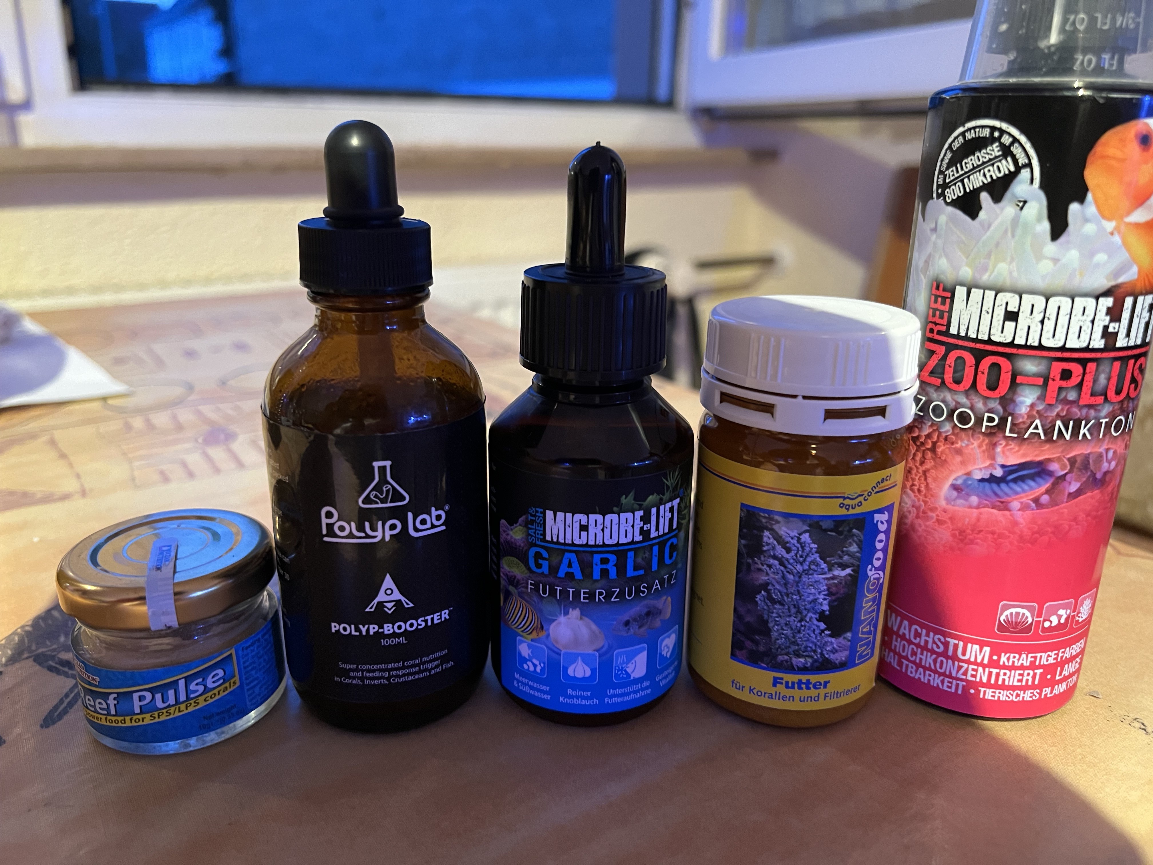 Artemia,Lobstereier, verschiedene Staubfutter sorten . Ist halt leider nur Abends bis Morgens richtig auf , zeige dir gleich ein Bild vom Futter