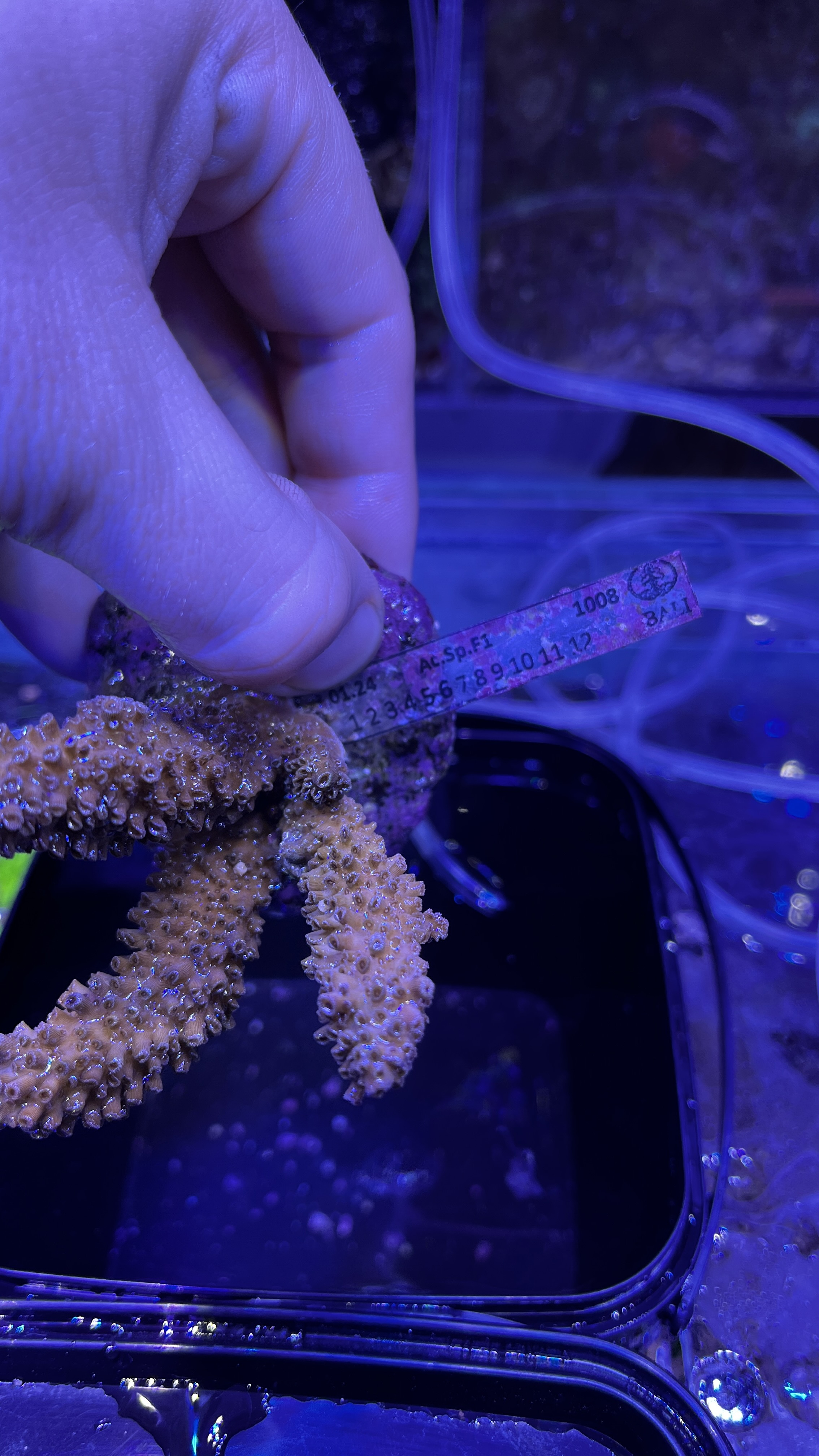 Ich denke mal das Datum 17.1.2024 bezieht sich auf das Datum der Ablegerbildung. Ac.sp.F1 wird vermutlich für die F1 Generation unbekannte Acropora Art stehen. Und der Rest?