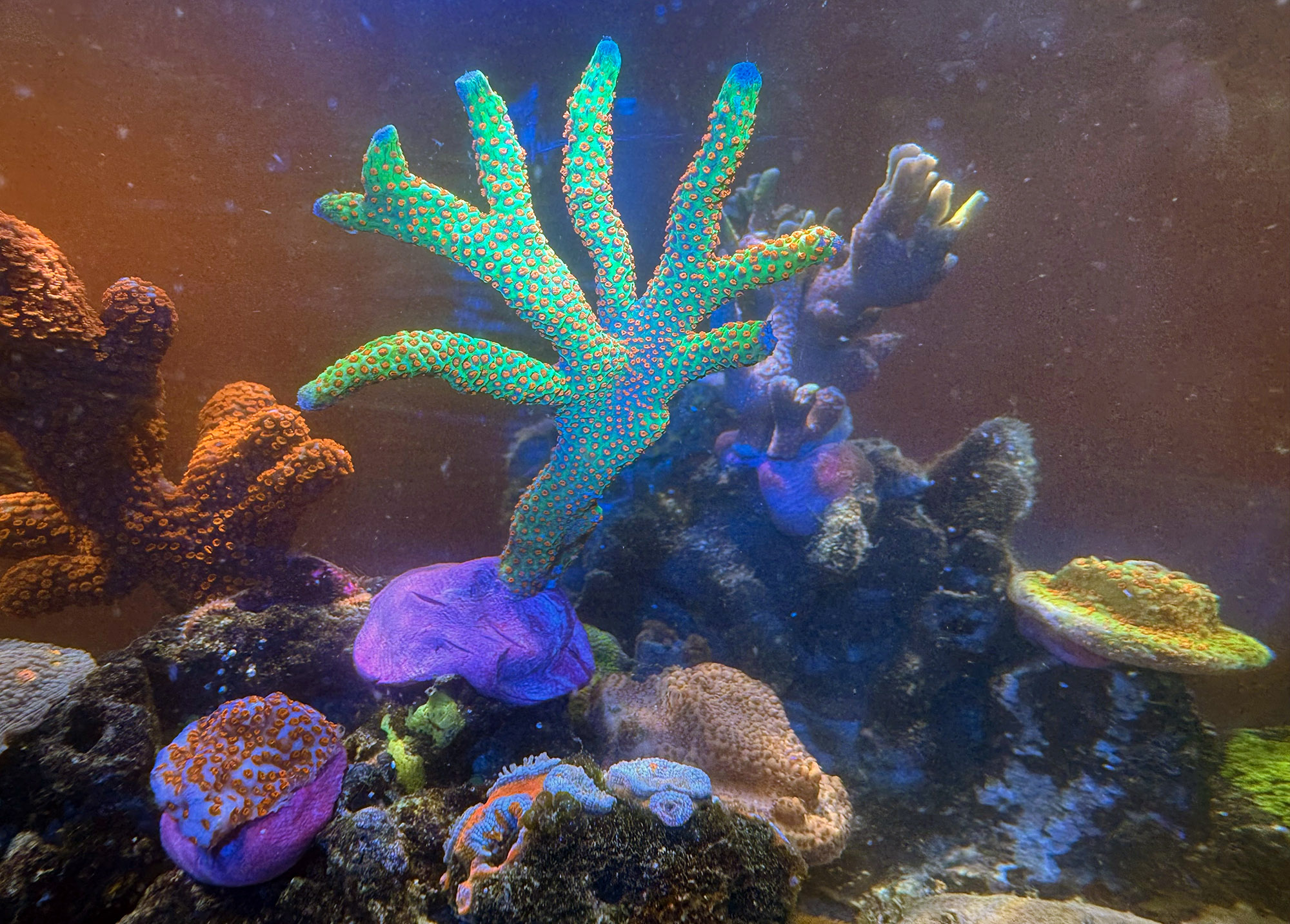 Links eine Montipora Grinch, Rot - Grün geht immer :)