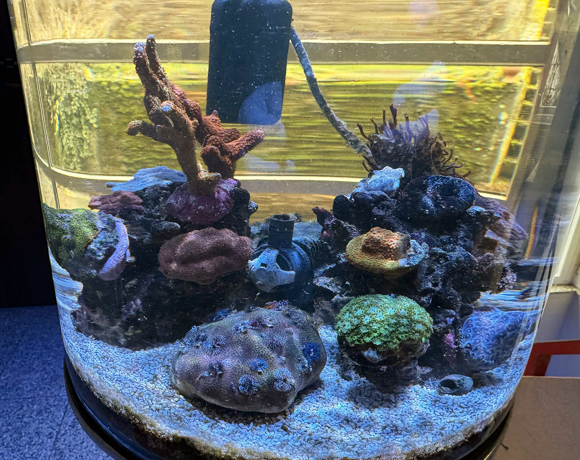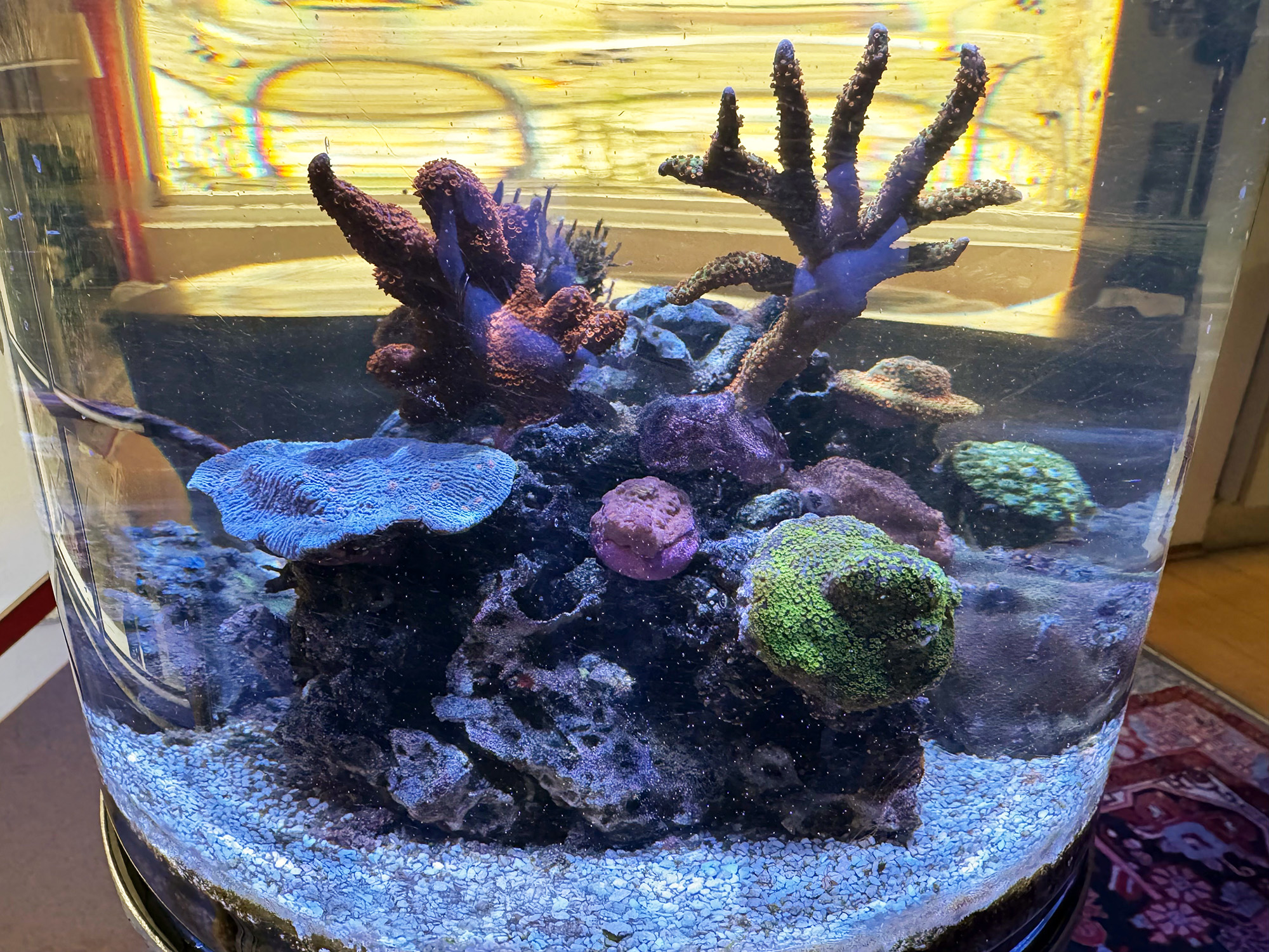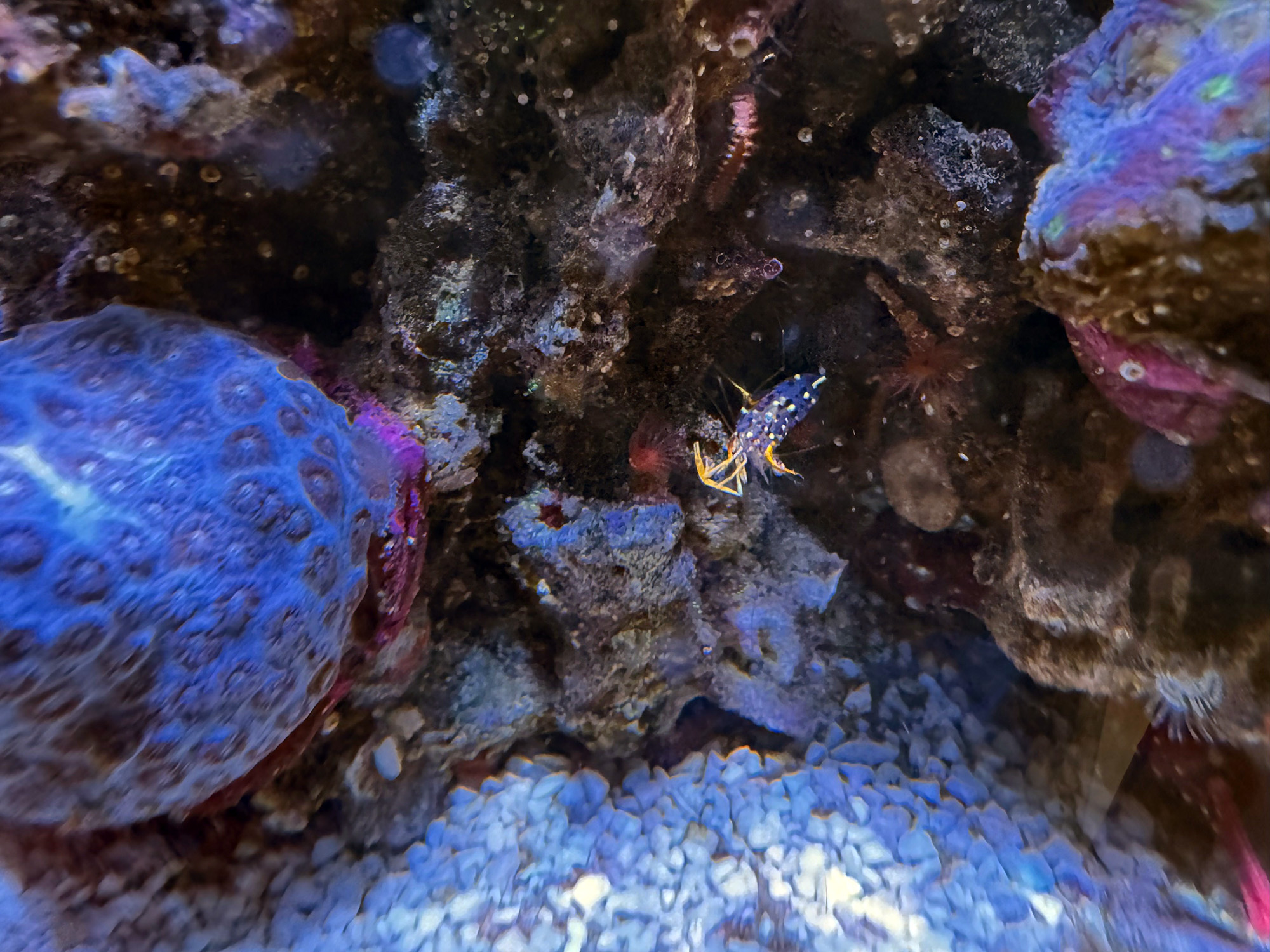 Da auf dem Lebendgestein aber einiges an Algen ist habe ich sie immer mal wieder hochgesetzt.
