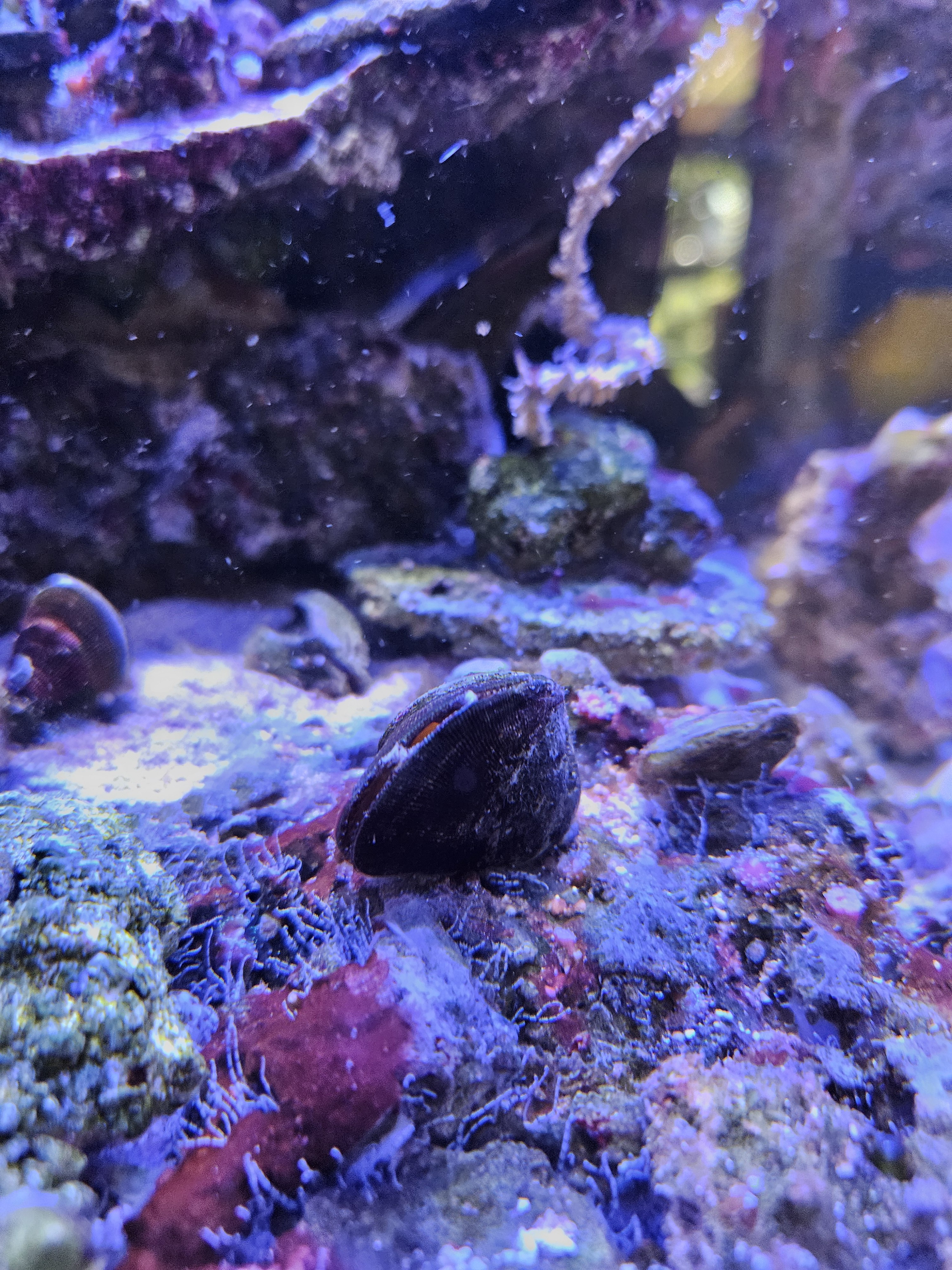 Sie saß an einer Silikonfuge (soweit hinten wie möglich) und ich konnte ihr Wachstum, soweit möglich aus der Entfernung beobachten, es war enorm. Heute, Jahre später hat sie geschätzte 5 cm Länge erreicht, wie üblich hinten an der Rückscheibe. Gelegentlich finde ich ihre Verankerung aus Byssusfäden (mpg.de/11077471/muschel-byssus-faden-bioproduktion) im Becken, welche schon 2 cm breit sind, wenn sie sich wieder einen neuen Standort gesucht hat.