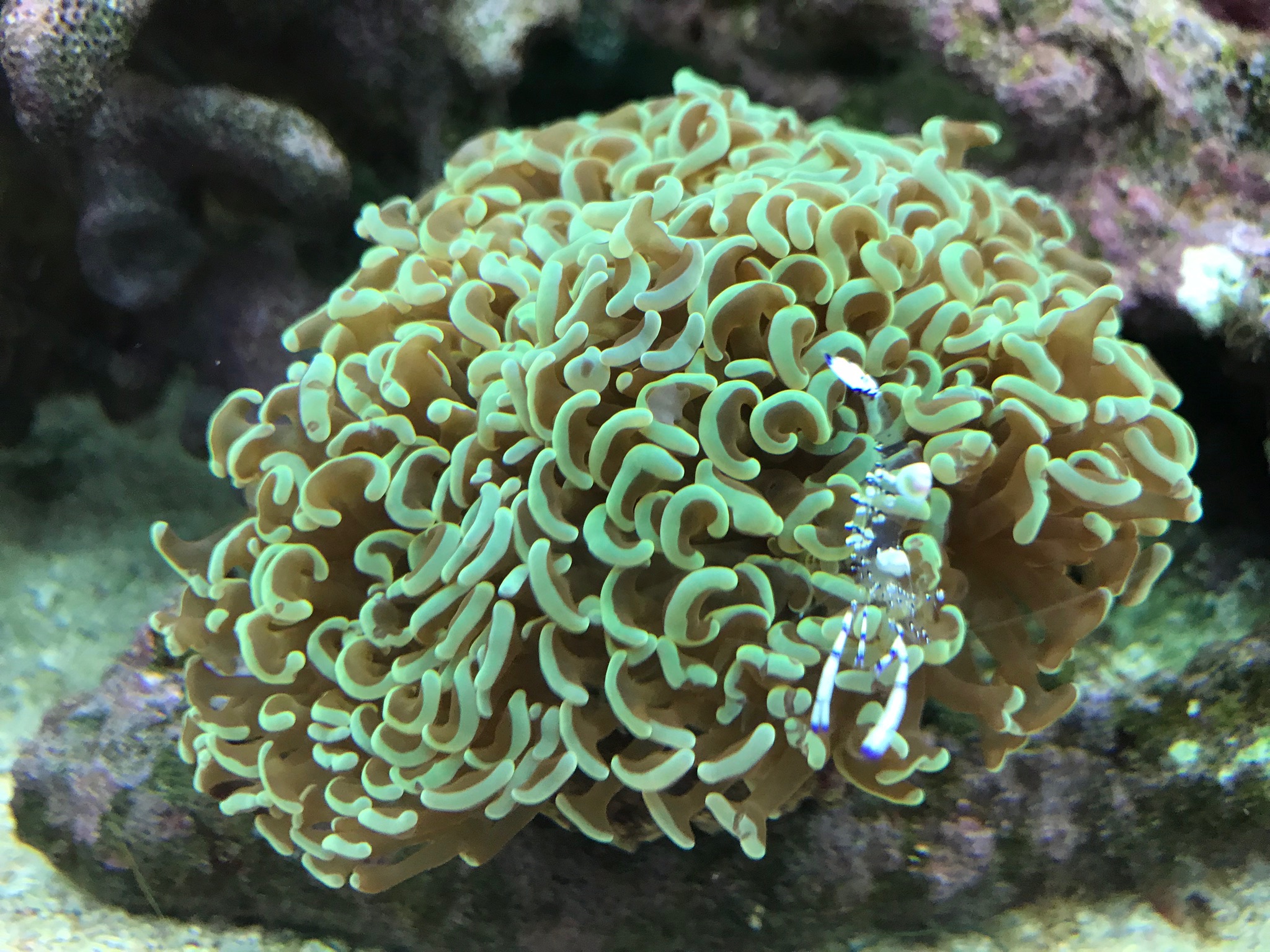 Die Steine von Steffi, einen kleinen Lebendstein mit Algen drauf und einen Ablegerstein mit Codium sind im Übergangsbecken.